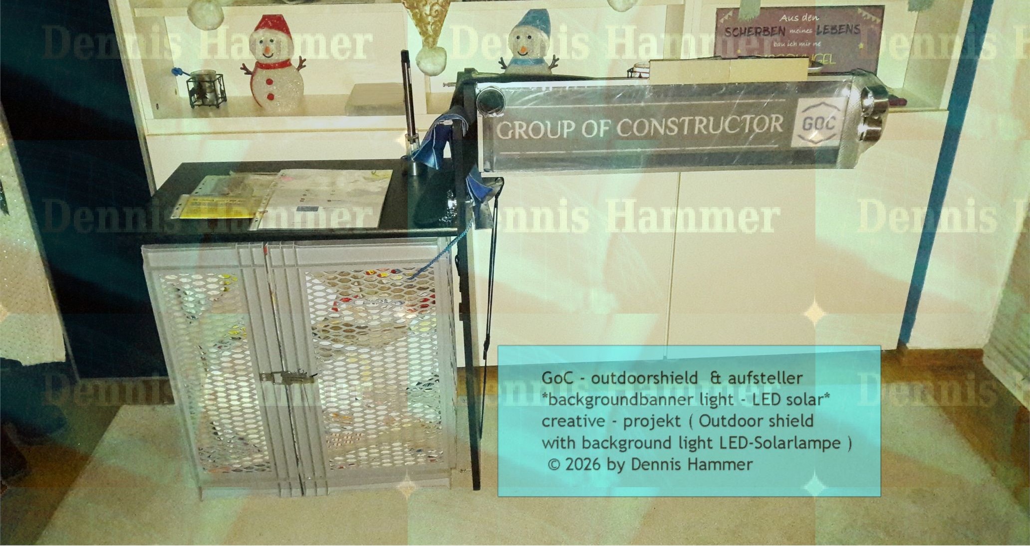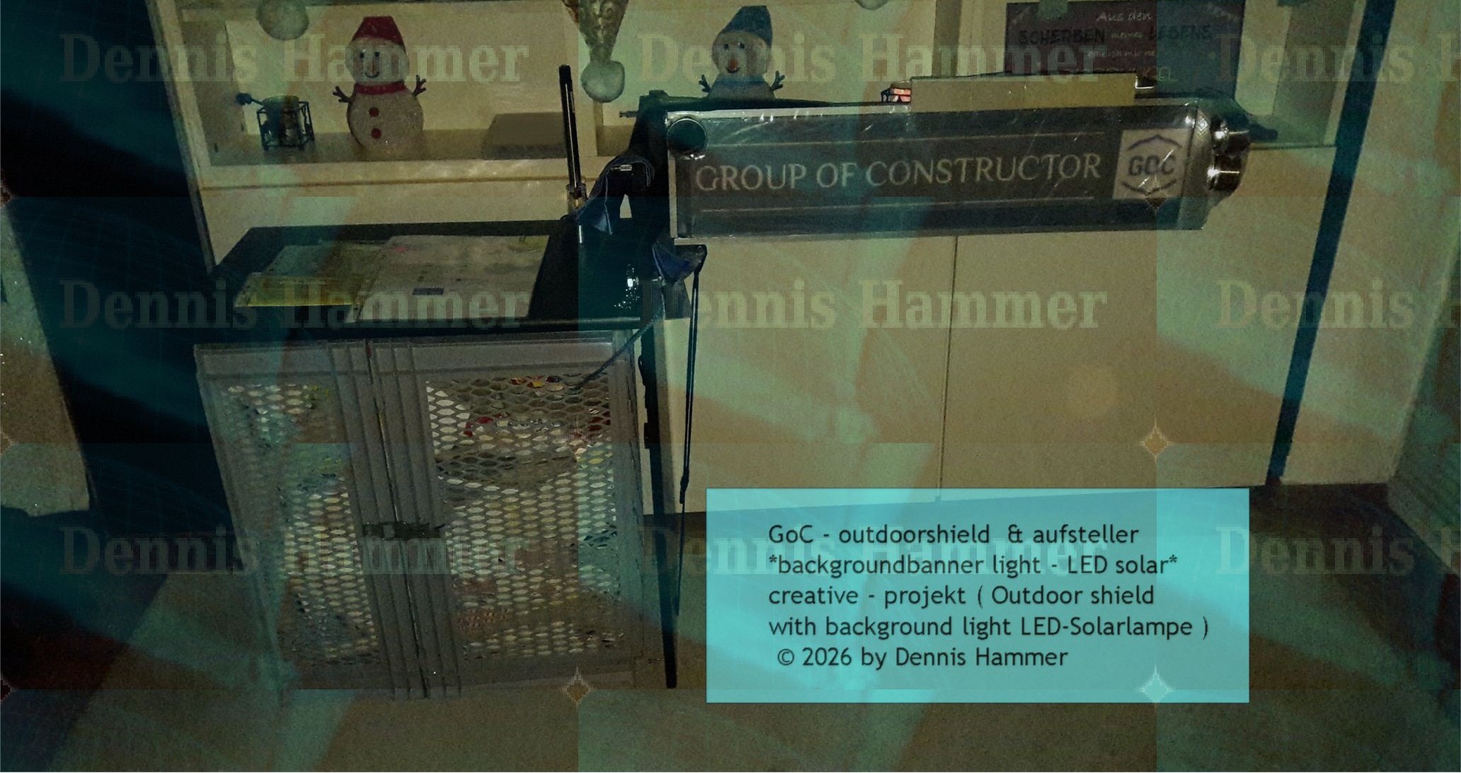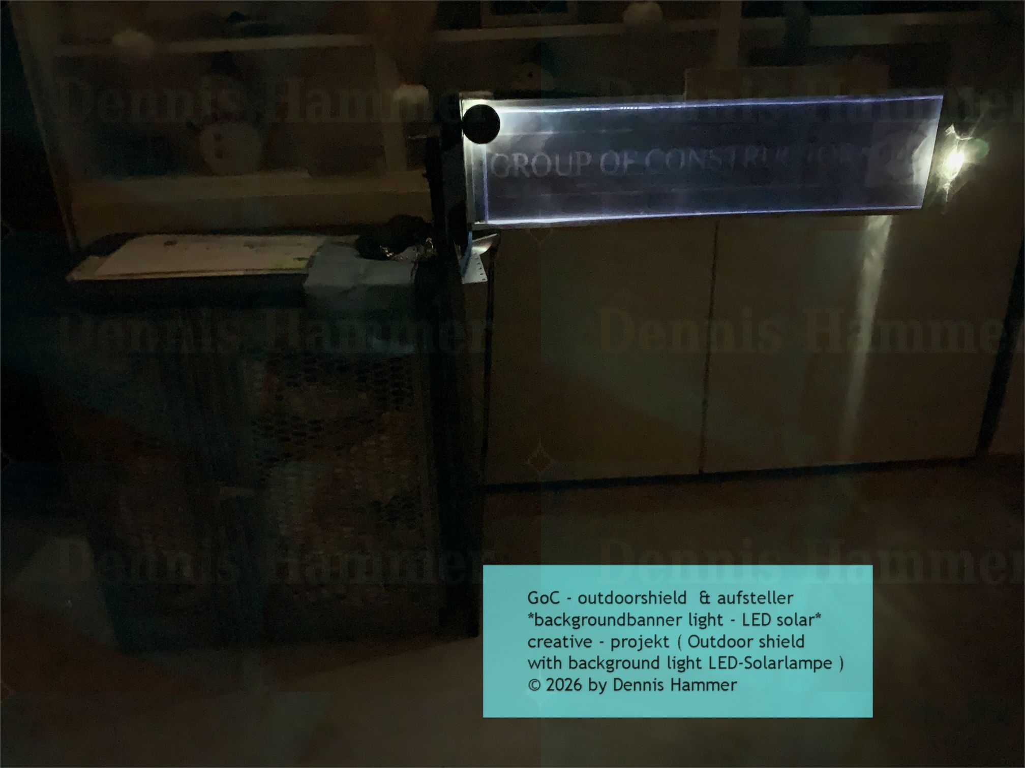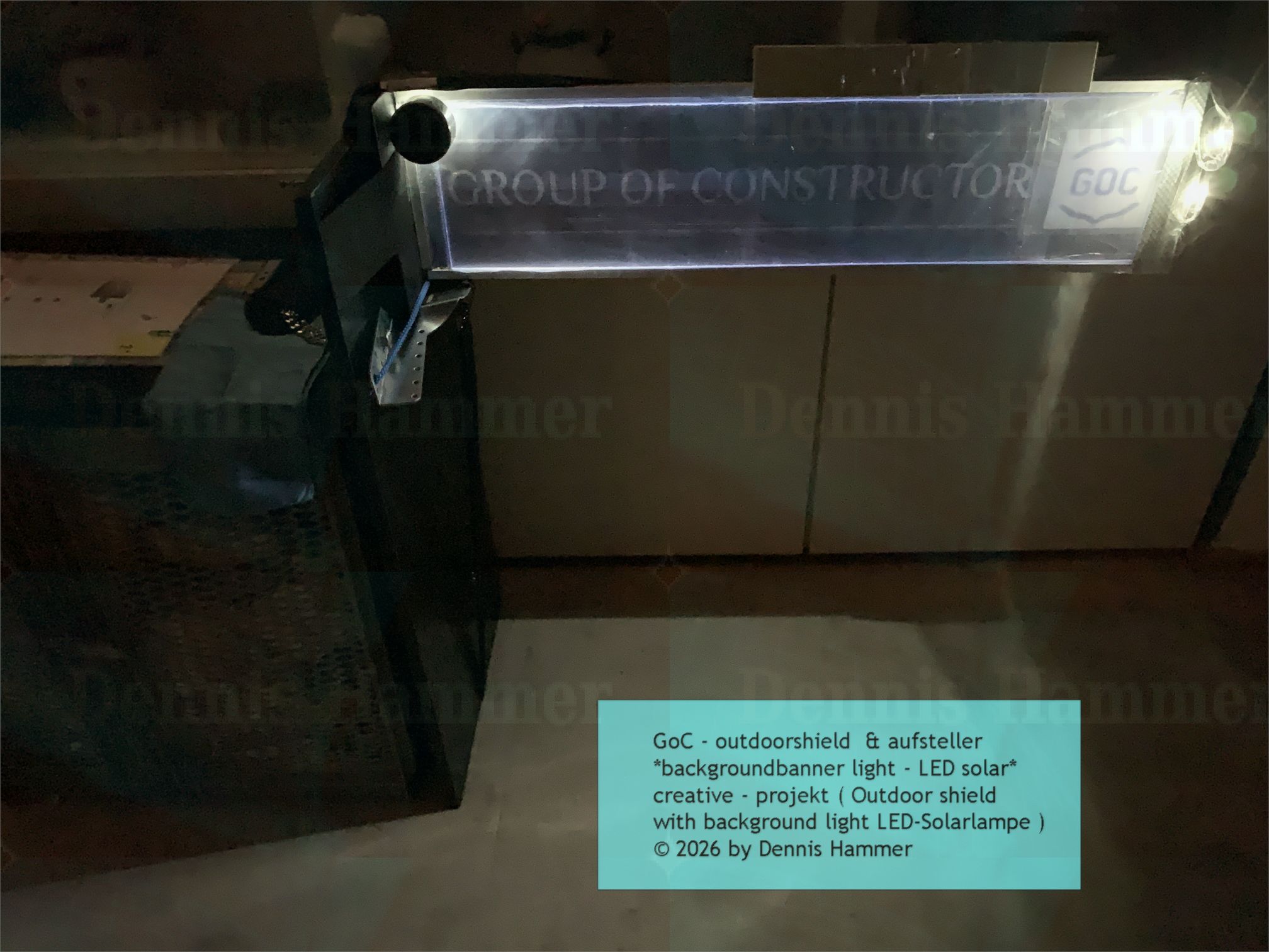 zum Internetauftritt ist mit einer 5 mm Plexiglasscheibe das sich gut eignet für eine Hintergrundbeleuchtung , das das GoC Logo und den Banner , ausleuchtet. das mit einer Erweiterung über den Einbau mit smart home LED-lampen in der Kombination ein Upgrade erhält für ein gewisses extra, die Spezifikation mit Smart Style ergänzen könnte mit Designspots und Dimmbare LED-Lampen. (ursprünglich / initial)
